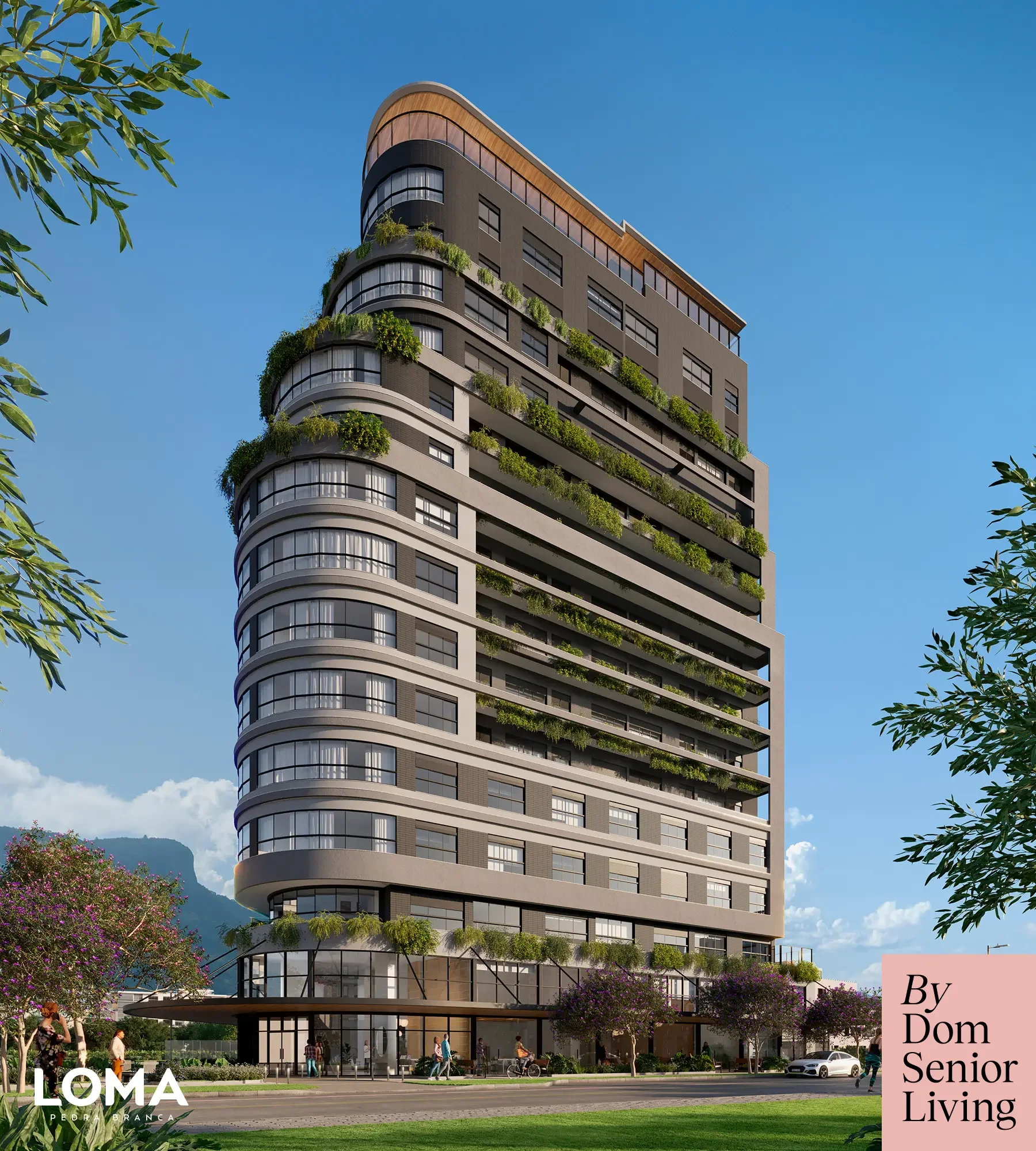 Em construção na cidade de Palhoça, região metropolitana de Florianópolis, o LOMA Pedra Branca by DOM Senior Living terá 110 unidades, mas apenas pessoas com mais de 60 anos poderão morar. O prédio terá apartamentos de 35 a 90 metros quadrados e é resultado de uma parceria entre a incorporadora Hurbana e a DOM Senior Living, empresa de gestão de residências sênior de alto padrão.